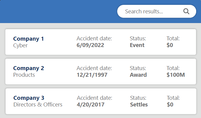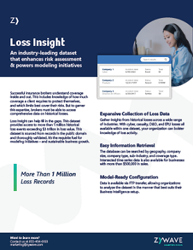 Loss Insight contains over 1 million historical loss records covering more than $3 trillion in loss value. Cyber, casualty, directors and officers (D&O), and employment practices liability insurance (EPLI) losses are included within the dataset.