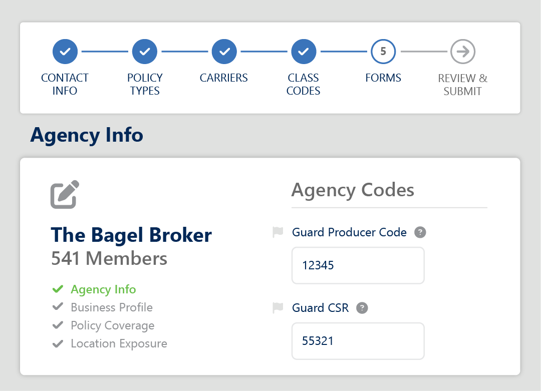 • Complete one easy-to-use form with questions deduplicated across carriers for the class code and coverages selected