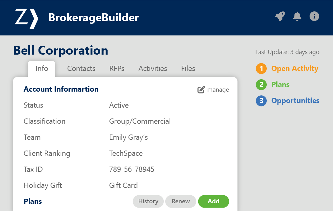Track activities for any given account, carrier, or employee, including current and past activity. Access all your agency’s accounts, plans, files, activities and carrier data from anywhere, 24/7.
