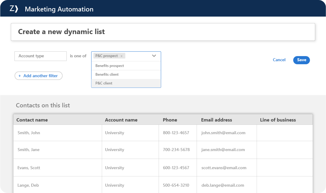 Each item you send can go to an audience as broad or as narrow as you desire. With options to send to individual contacts, customer accounts, or dynamic and static lists, you have full control over who gets your message.